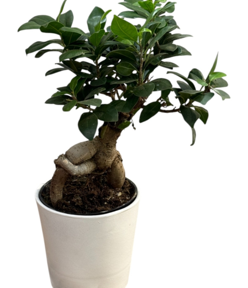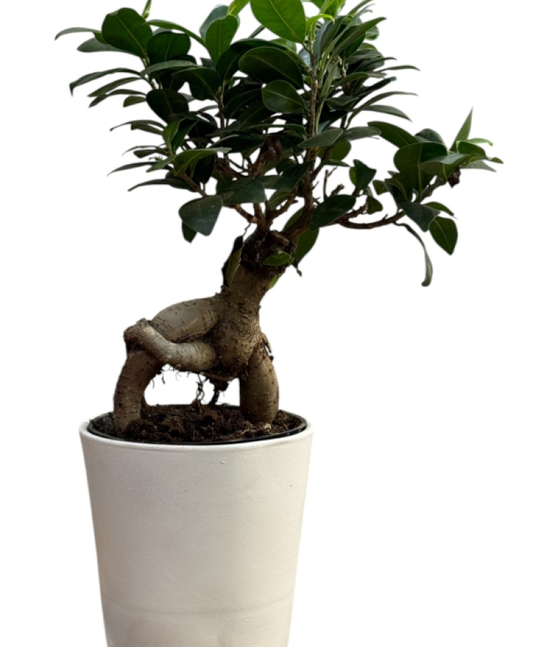 Beyaz seramik saksıda sunulan bu zarif Bonsai (Ficus Ginseng), doğanın minimal estetiğini yaşam alanlarınıza taşıyor. Kalın ve karakteristik gövdesi ile güçlü bir doğa hissi sunarken, yeşilin canlı tonları ile iç mekanlarınıza huzur katıyor.